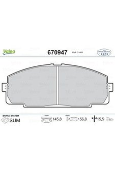 VALEO 670947 ÖN BALATA HYUNDAI HILUX III PICKUP 2.5D-4D 4×4 (12/2