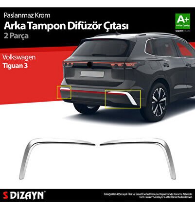 S-Dizayn VW Tiguan Krom Arka Tampon Difüzör Çıtası OEM Still 2 Prç. 2024 Üzeri A+ Kalite 7655910